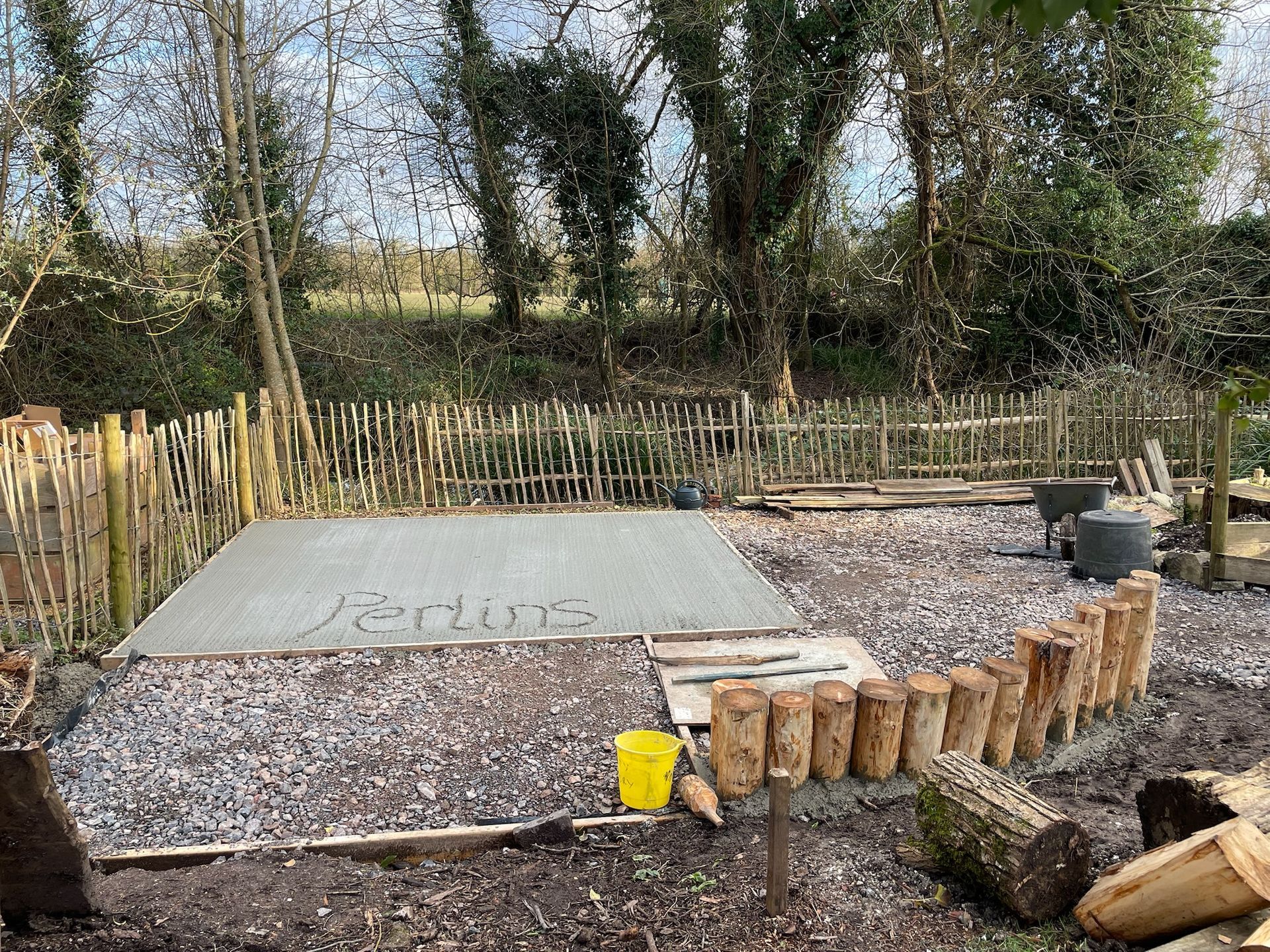 Delivered by a big concrete truck we wrote our name in the concrete