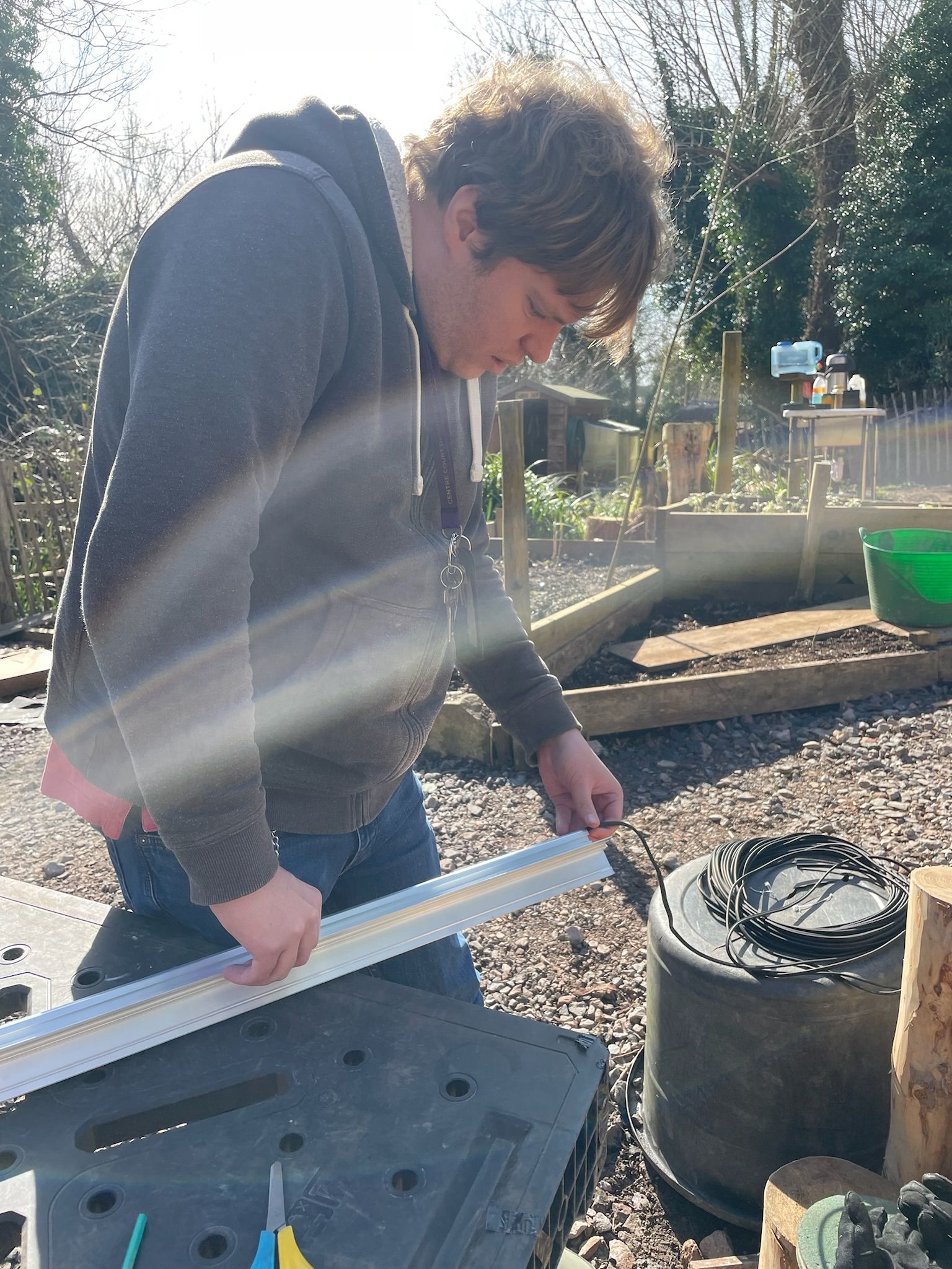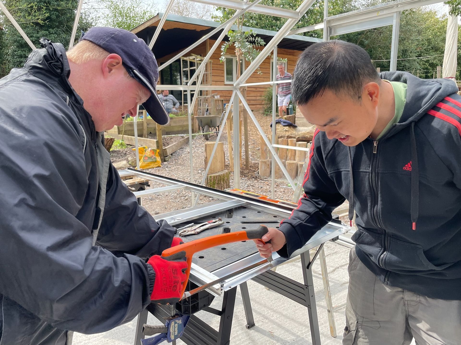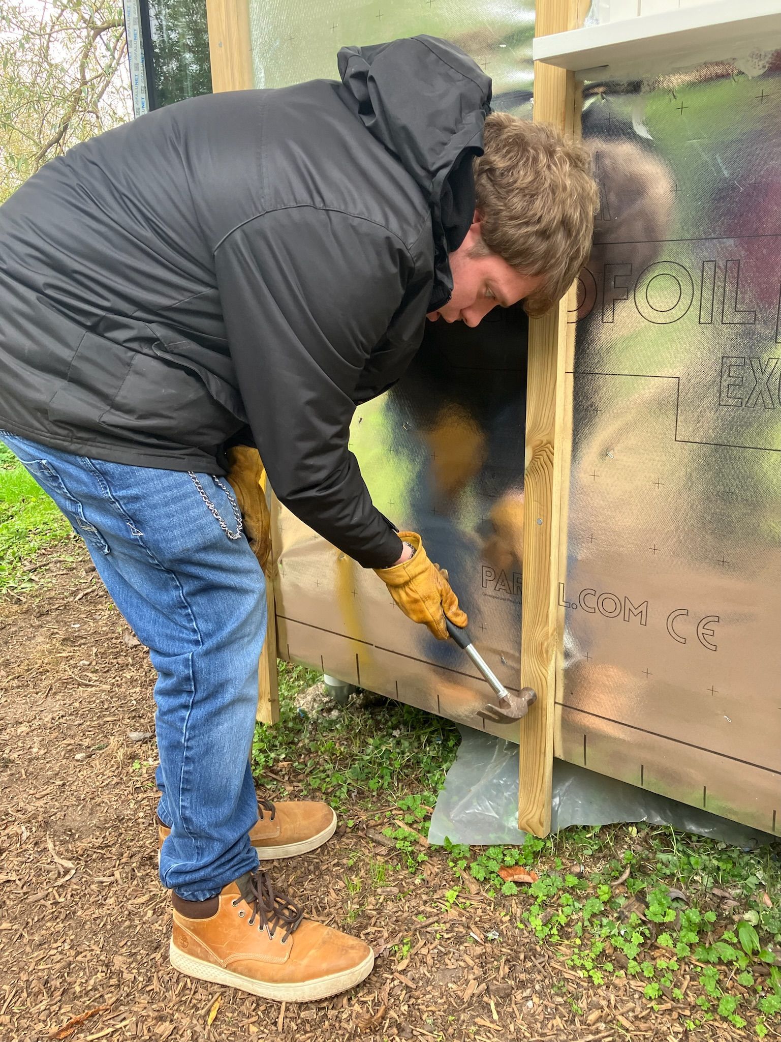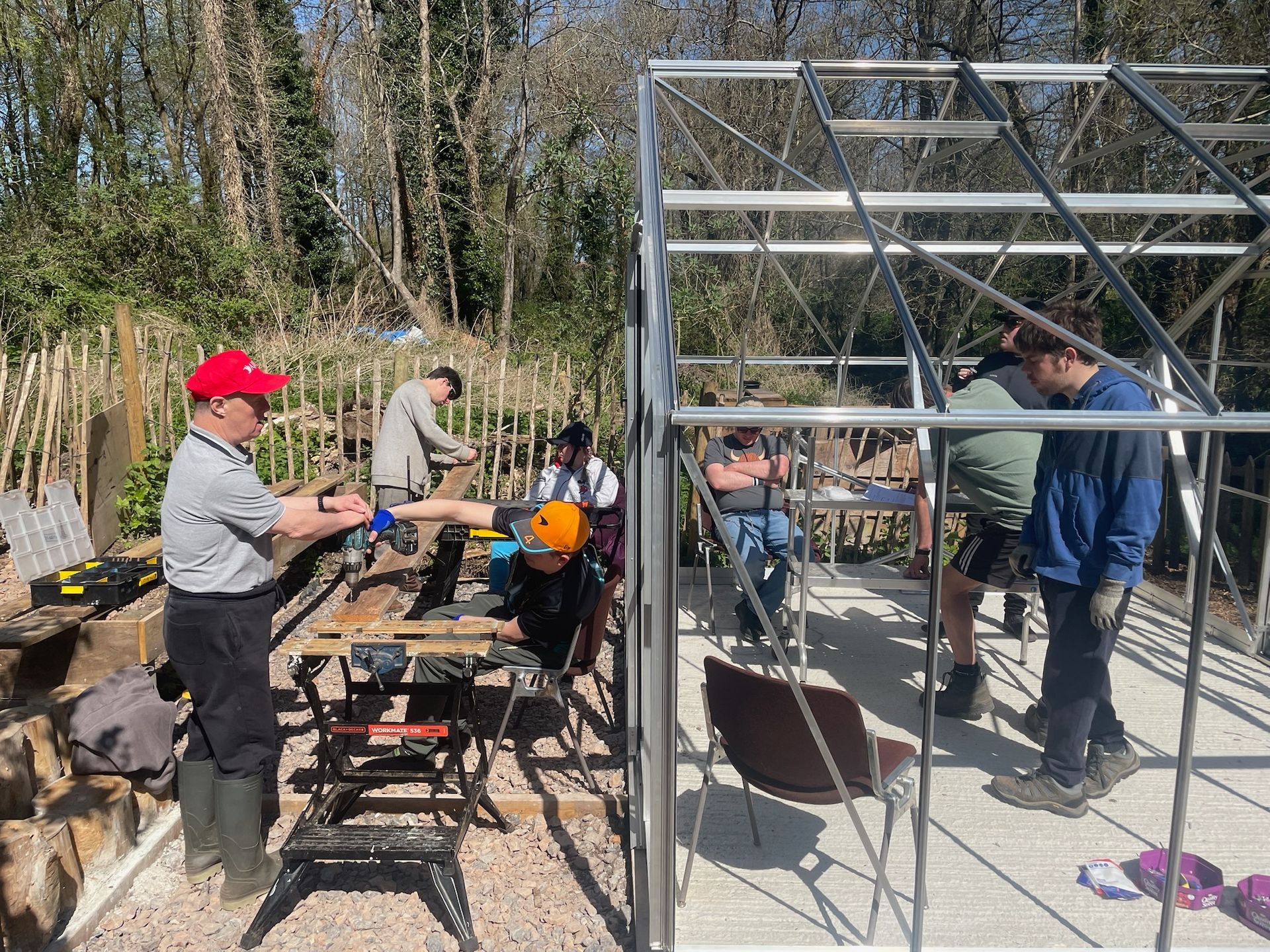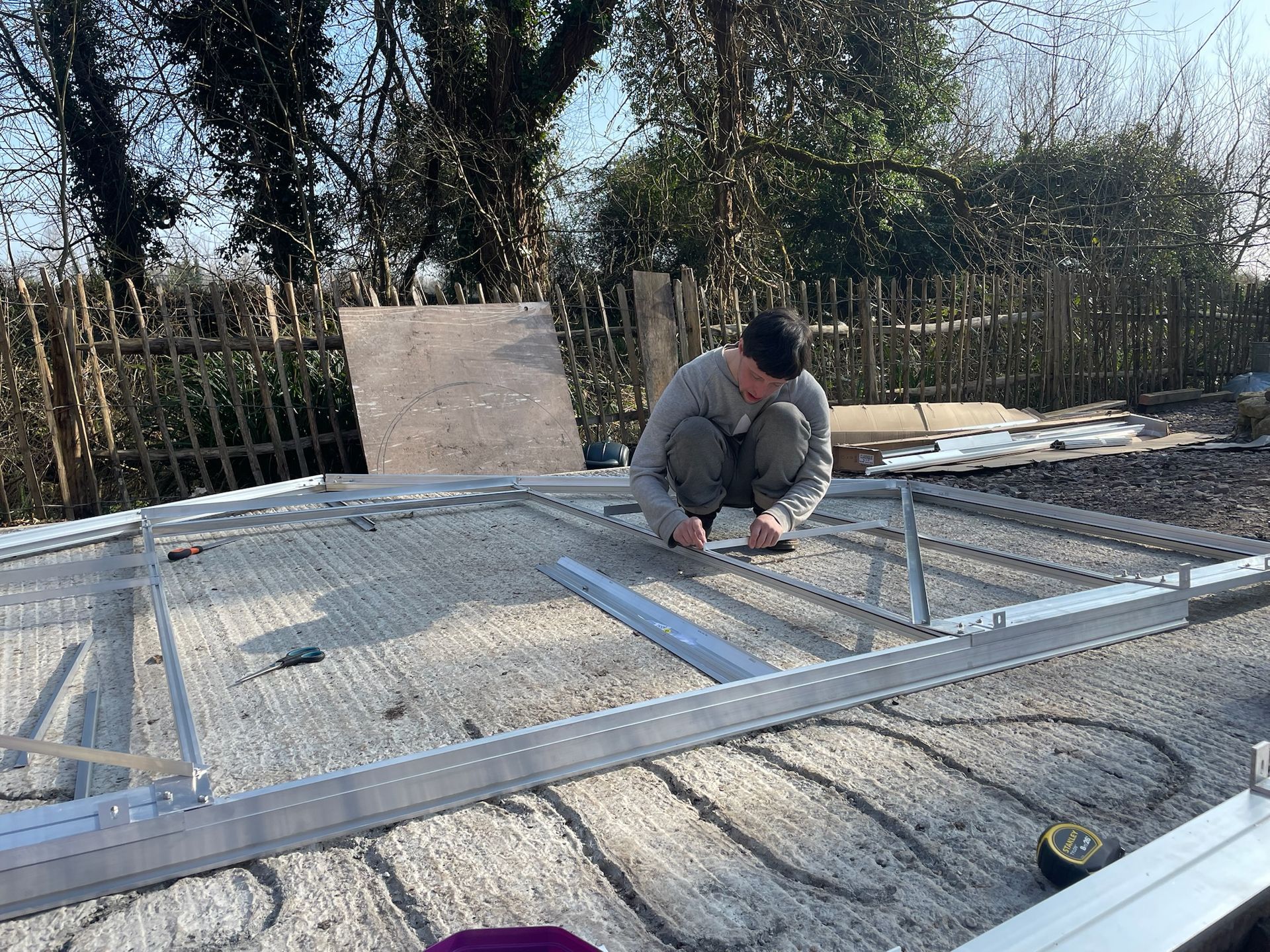 Perlins building the frame for the greenhouse putting the frame together