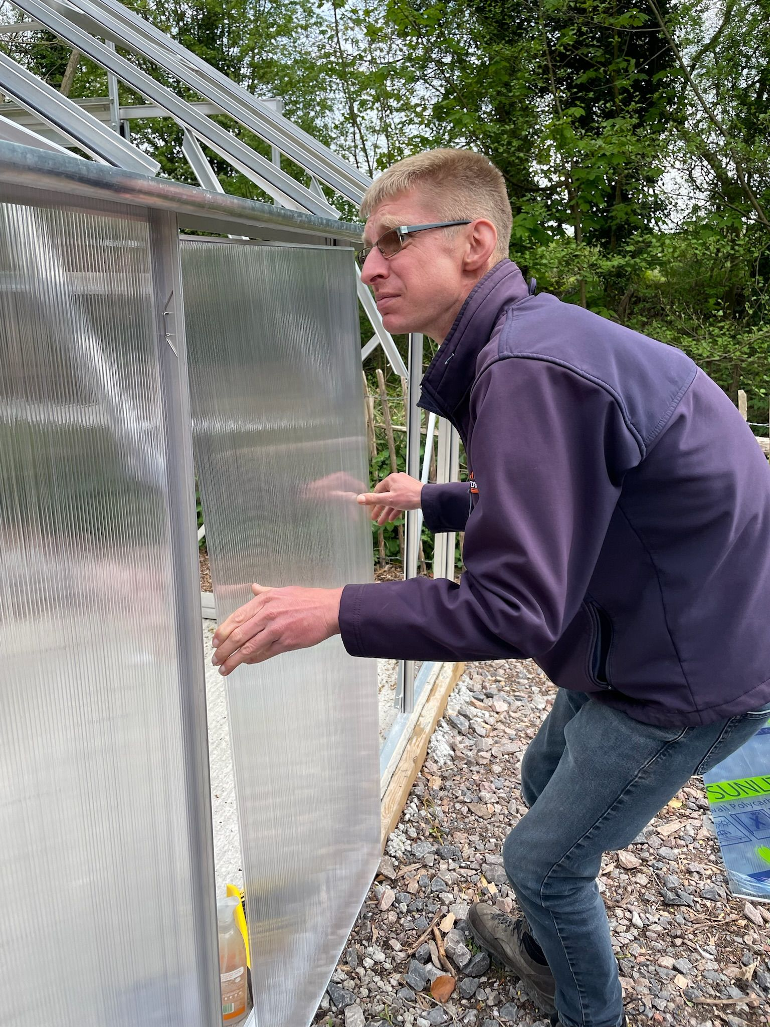 Putting the glass in the greenhouse frame in 2025 was our 1st growing season